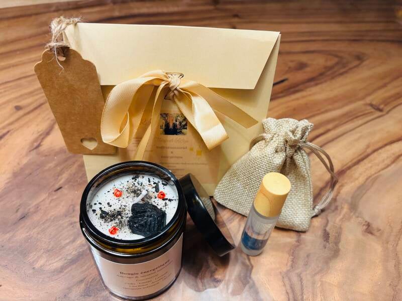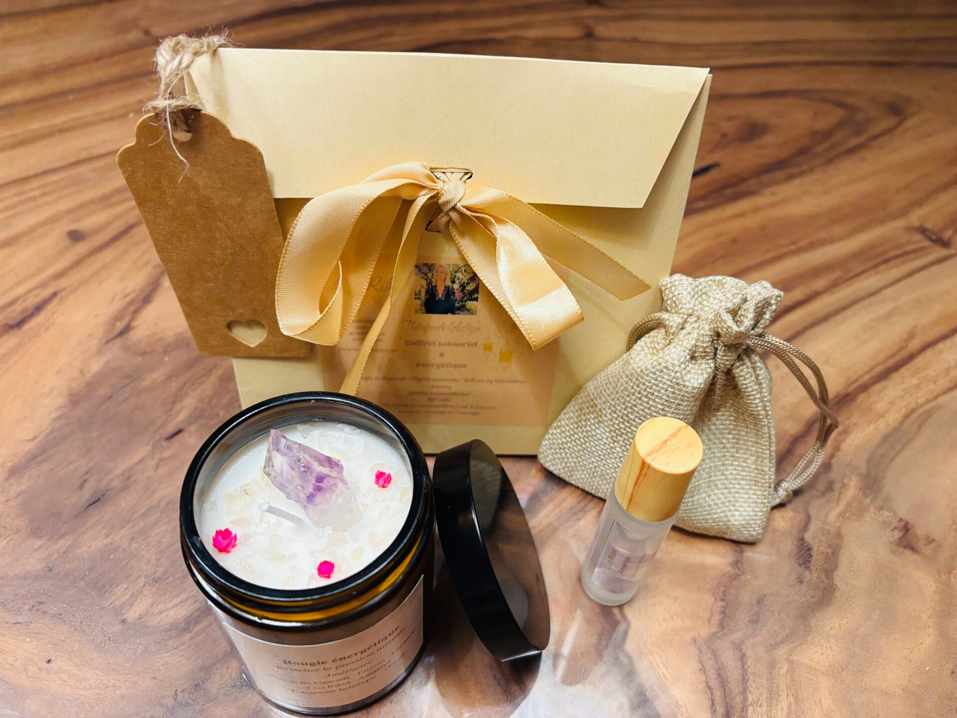 Chaque "Coffret sensoriel Amaëly" est une création artisanale, pensée pour vous. Il contient une bougie parfumée 180 ml, un roll-on 10ml aux huiles essentielles, une pierre naturelle sélectionnée et un QR code vous donnant accès à une séance guidée de 30 minutes. Des outils précieux pour retrouver votre équilibre intérieur.